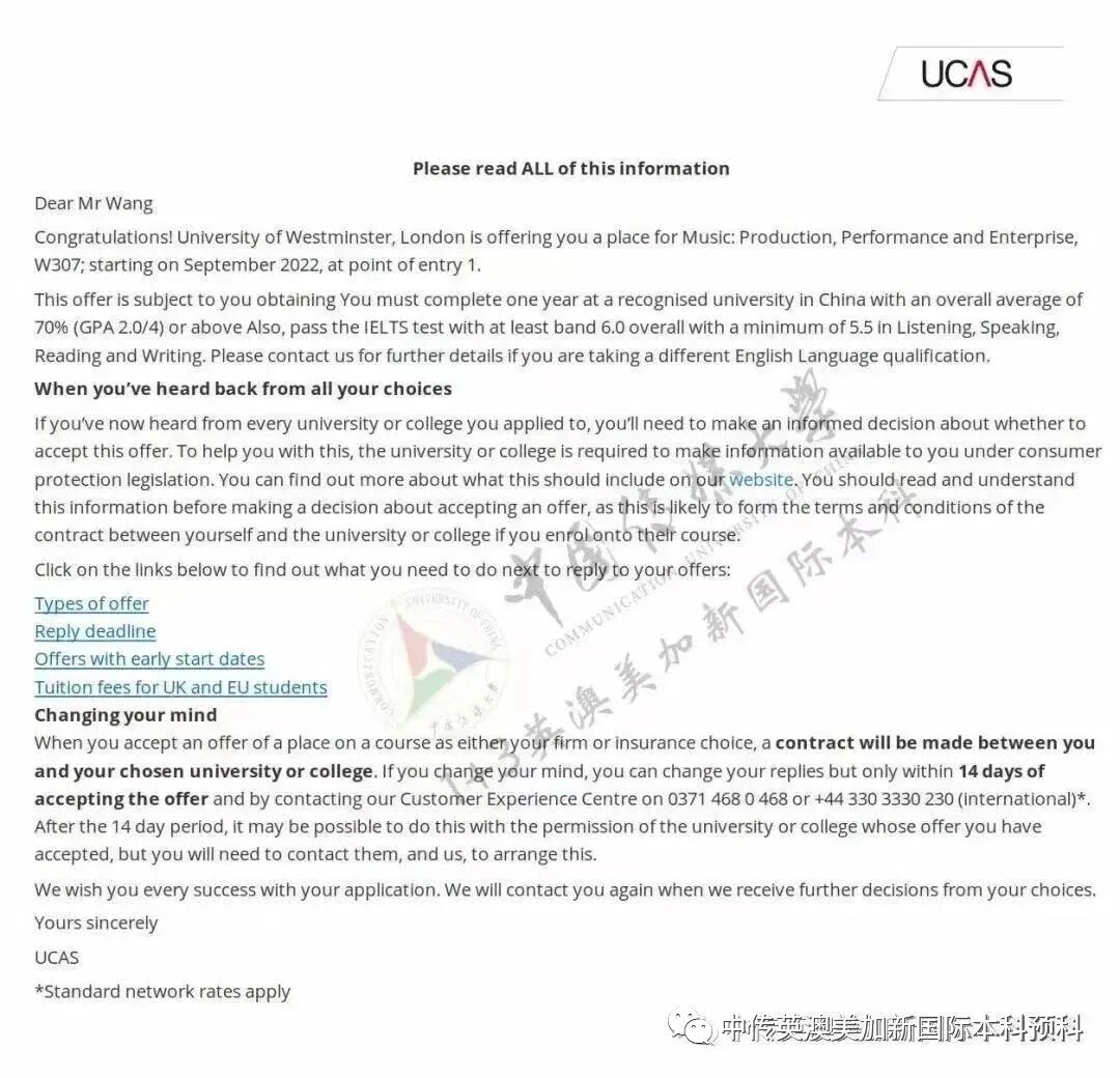 1.雅思成绩(有效期之内)4.5分及以上(单科不低于4分),或当年高考成绩高于所在省、自治区(直辖市)本科一批次录取分数线的85%,可免试入学。对于合并本科批次的省、自治区(直辖市),一本线以各省、自治区(直辖市)划定的特殊类型招生控制分数线为准;